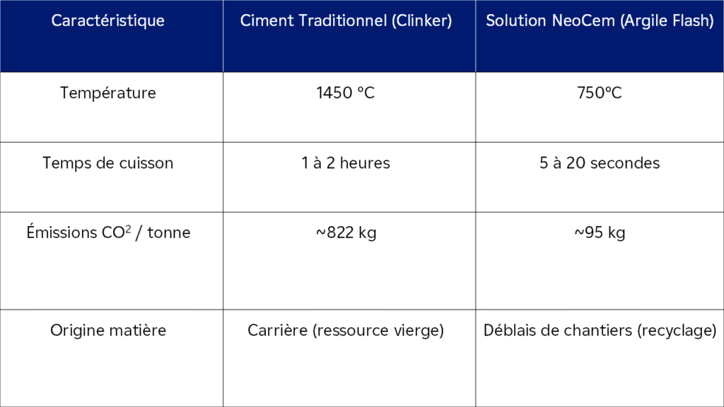 • NeoCem apporte la preuve technique, à travers le recyclage des terres et le procédé de flash calcination.
